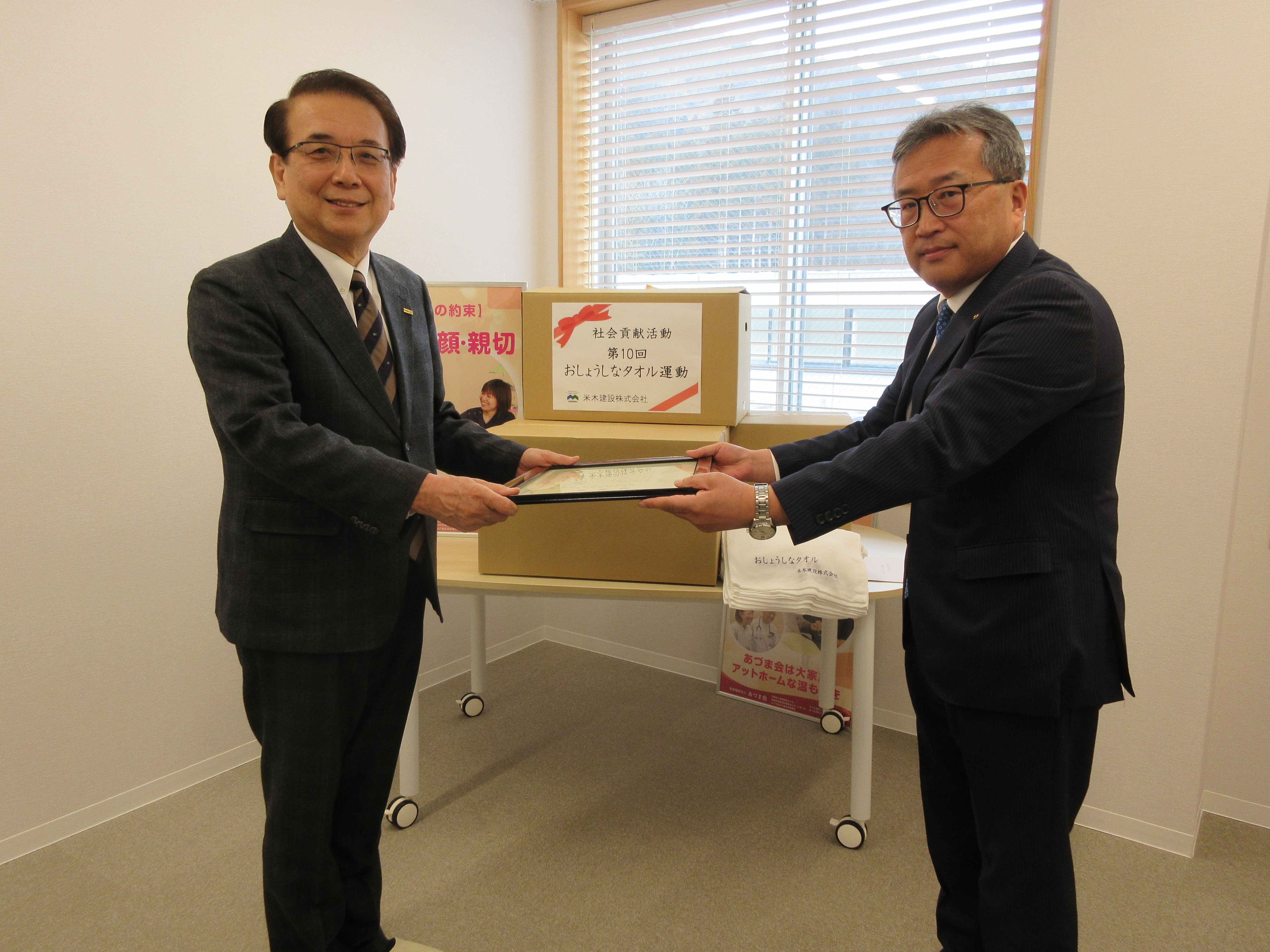 3/27 米木建設様よりタオルを寄贈いただきました。